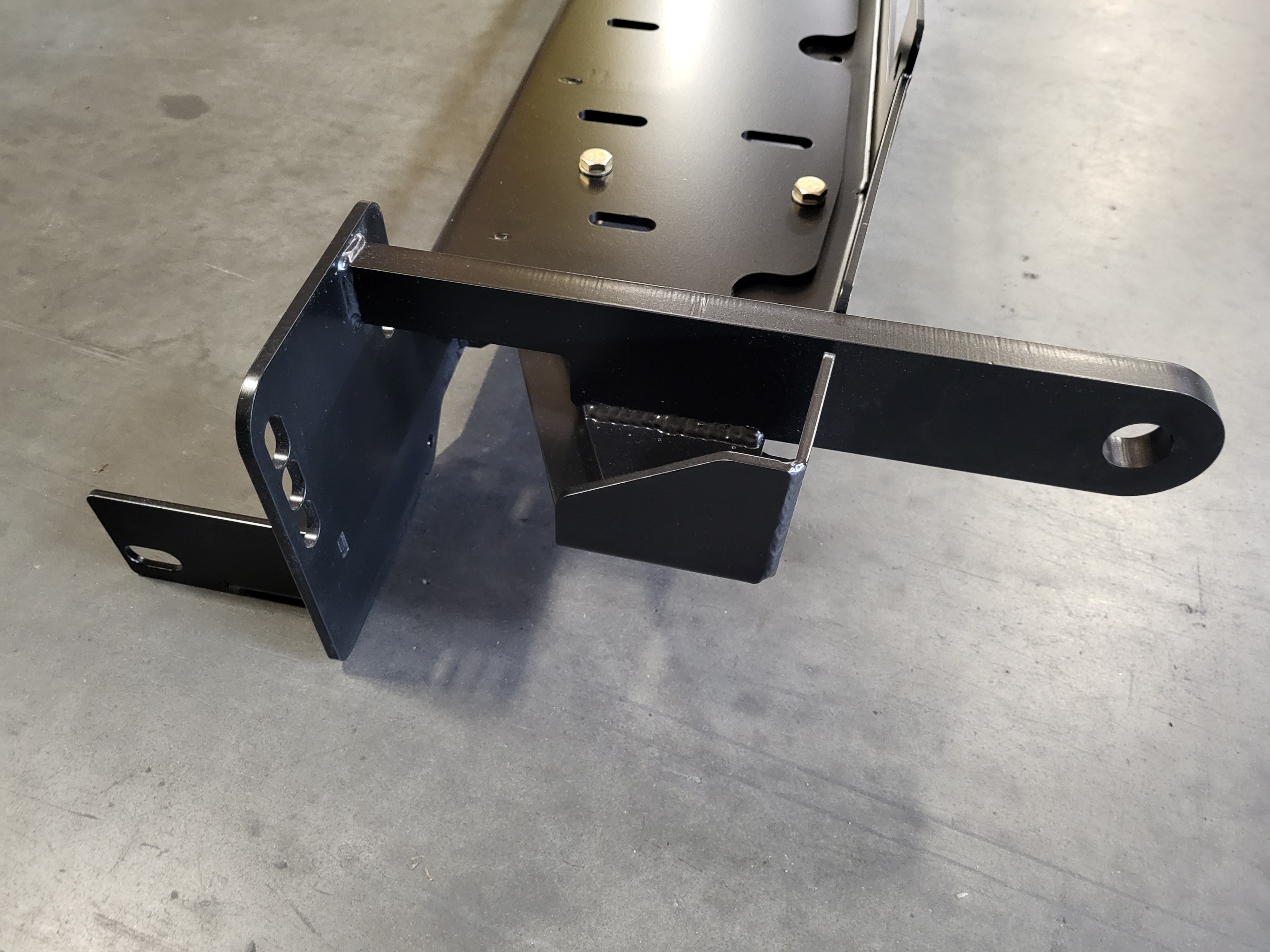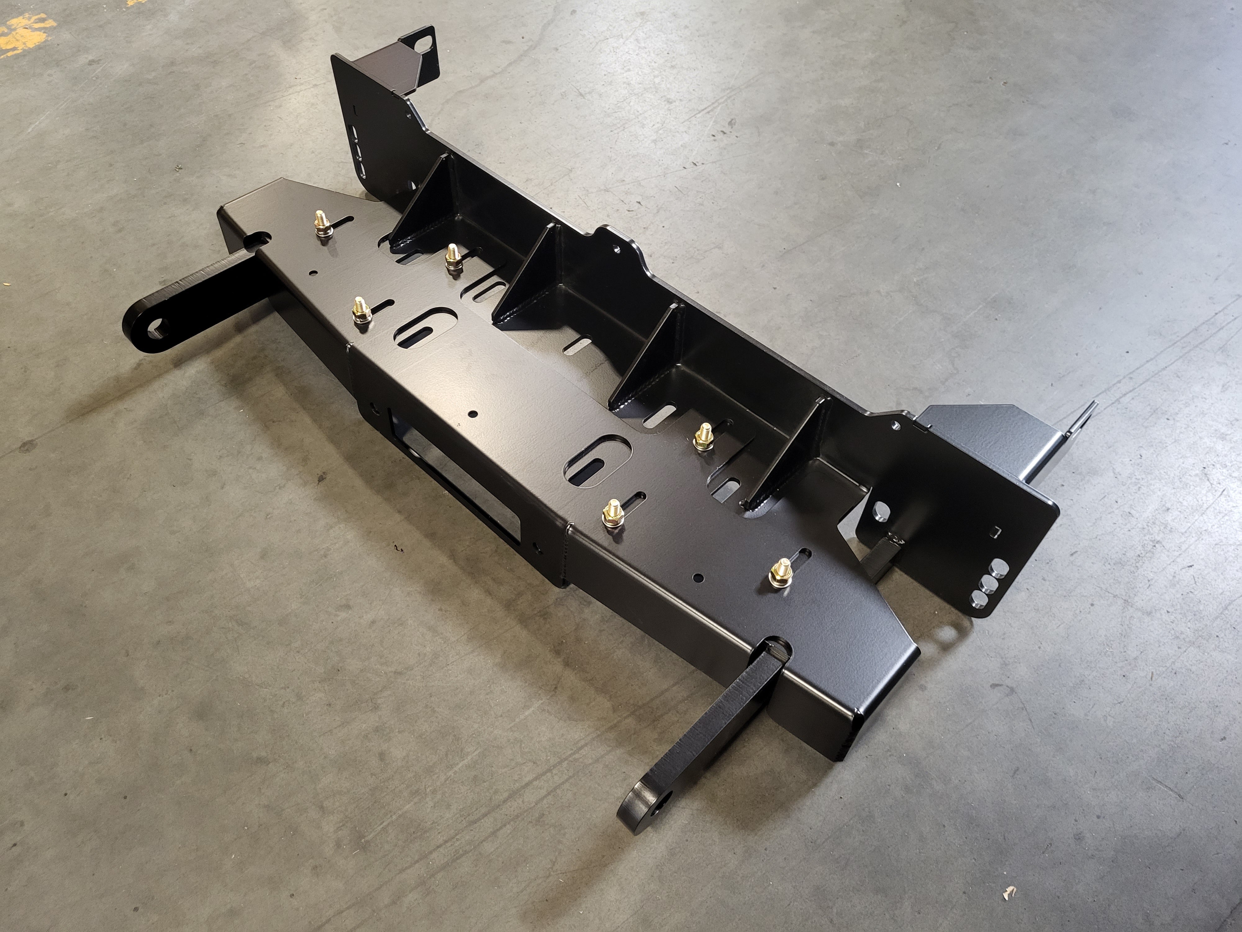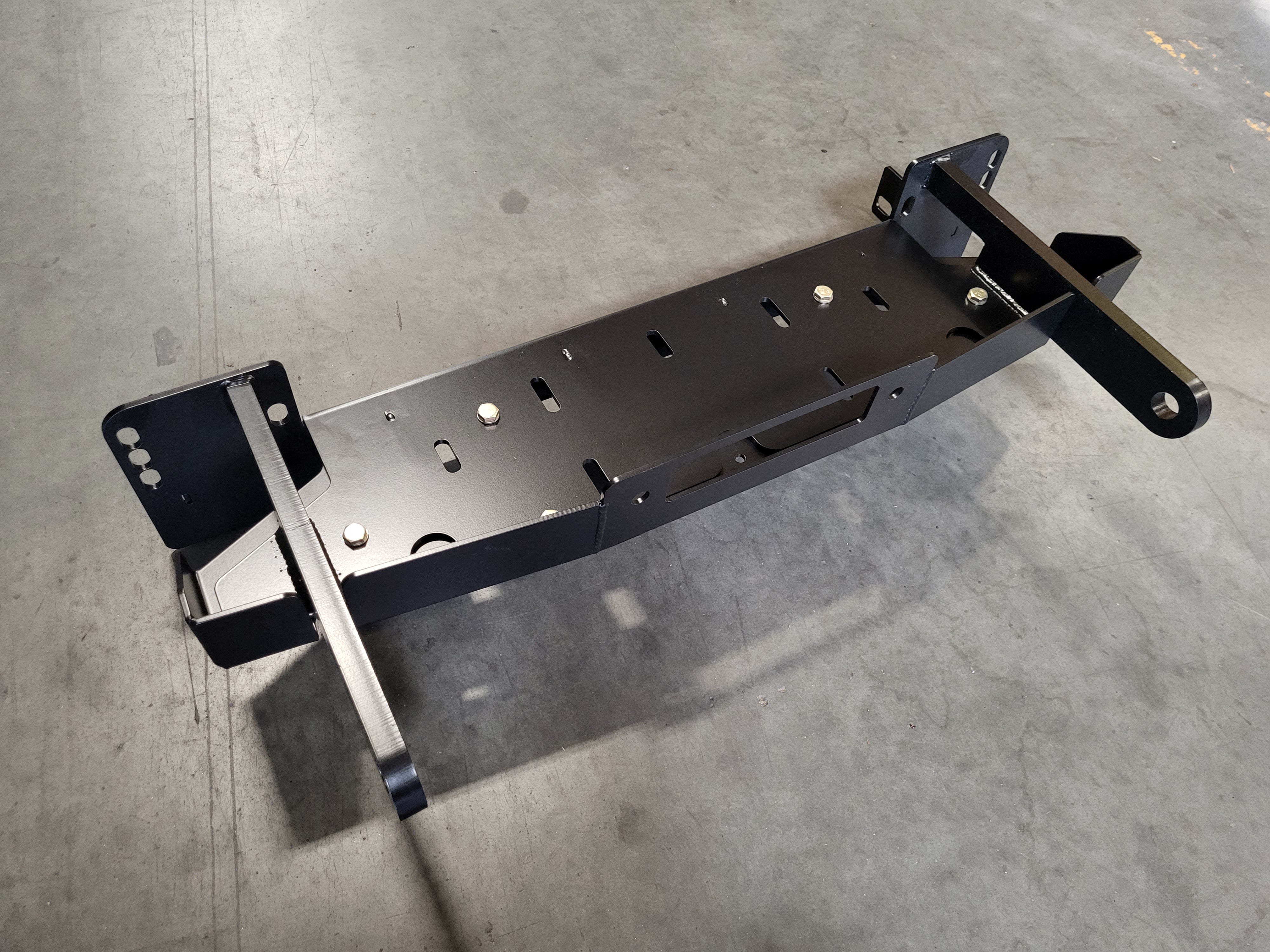 Our Adjustable Hidden winch mount hides behind your factory bumper cover. This version includes heavy duty 3/4" Recovery points built into the winch mount. The recovery points and winch base are fixed and bolted directly to the frame, the fairlead distance and bumper backing plate is adjustable.