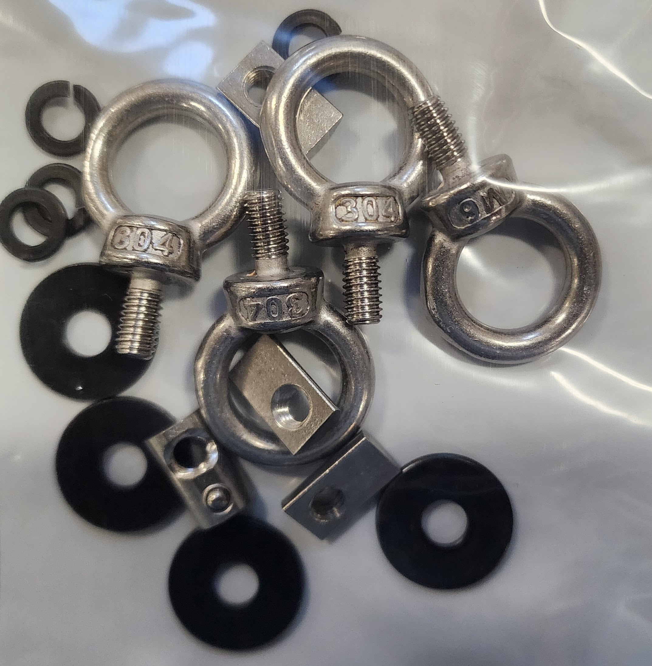 Eye Bolt Kits for Extrusion come with M6 eye bolts, drop in T nuts, and washers. Pack of four.
